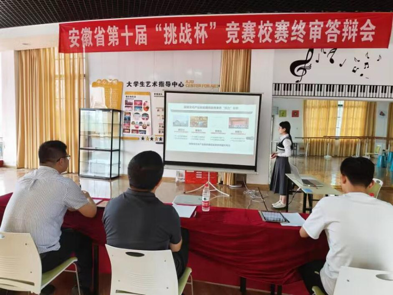 自启动第十八届“挑战杯”大学生课外学术科技作品竞赛以来,学校高度重视,召开“挑战杯”备赛工作部署会、推进会,校团委积极整合多方资源,开展多轮训练营演练和模拟答辩评审,全方位多维度推进“挑战杯”备赛,提高备赛完整性与科学性,为参赛团队提供全方位指导。徽文化美育团队在校赛中,答辩人恰当得体的穿着被评委专家称赞“新时代最美大学生”,项目研究内容的本土性和落地性深深打动评委专家,鼓励动员团队成员积极开展实地调研,丰富项目内容,最终以学校唯一一组本科生哲学社会科学组代表参与省赛。