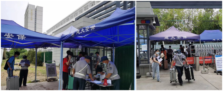 为严格落实疫情防控有关要求,保卫处强化安保人员技能与服务意识培训,要求所有安保人员掌握疫情防控核验流程及突发事项处置。同时增派一线人员,帮助学生搬运行李,获得学生好评。