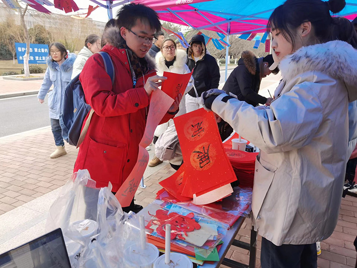 本网讯 为传承中华文化,喜迎传统佳节,近日,环能学院在南苑餐厅广场举行“猜谜语送春联”活动。