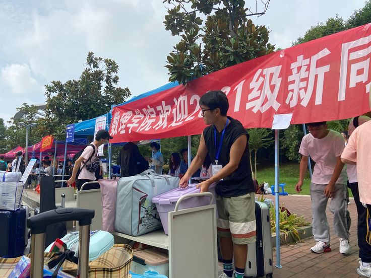 新生们在志愿者的引导下从南大门前往报到处,途中,学生党员志愿者积极帮助学弟学妹搬运行李,介绍校园,充分发挥党员先锋模范作用,以实际行动践行全心全意为新生服务的宗旨。报到处志愿者工作更是有条不紊,为新生做好登记、办理入住手续、发放新生物品。老师们在一旁与新生悉心交流、答疑解惑,让他们在与父母短暂离别后充分感受到数理大家庭的温暖,欢迎墙前大家纷纷拍照留念。
