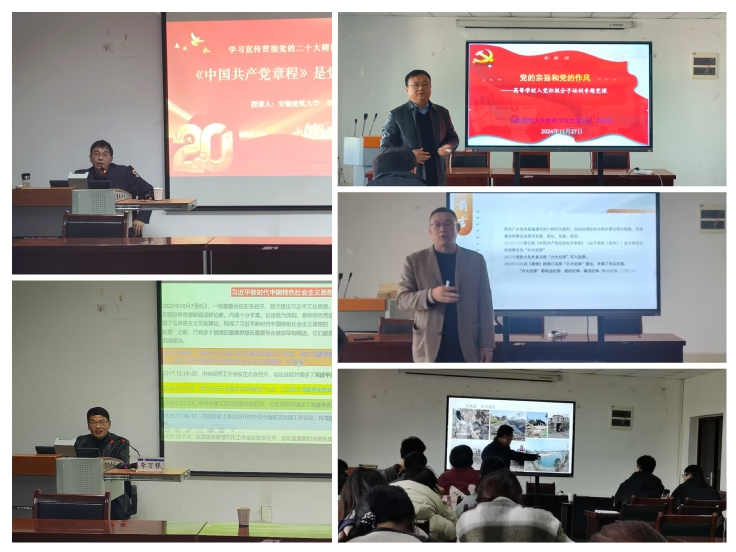 校党委常委、组织部(党校)部长吴运传、马克思主义学院党总支书记李万银、数理学院党委书记胡燕青、副书记方绍正、数理学院团委书记赵妮、数理学院辅导员水天柱等分别分别讲授“党章是党的根本大法”、“党的宗旨和党的作风”、“深入学习习近平新时代中国特色社会主义思想”、“中国共产党纪律处分条例解读”、“伟大、光荣、正确的中国共产党”以及“党员的权利和义务”等主题进行了专题辅导。