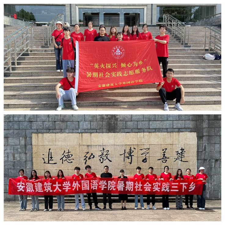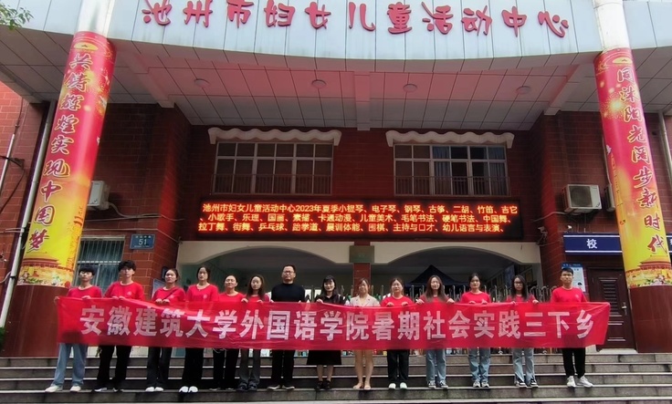 本网讯 为了贯彻落实党的二十大精神,响应国家进一步动员社会各方力量全面推进乡村振兴,加快农业农村现代化,建设宜居宜业和美乡村的号召,2023年7月9日至7月13日,安徽建筑大学外国语学院师生一行15人组成“英火探兴,倾心为乡”团队赴池州市贵池区开展暑期社会实践三下乡活动。