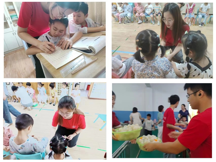 7月10日起,实践团队开始了义务支教之旅。硬笔书法课上的“看、写、比、改”、儿童美术课上的多彩图画、英语绘本课上的趣味游戏、乒乓球课上的你来我往、小记者课上的自我介绍、儿童舞蹈课上的婀娜舞姿……每一节看似平凡的小课都饱含着志愿者倾情奉献的真心与绞尽脑汁的策划,每一天看似简单的教学安排都经历过一次又一次的推翻。在一堂堂生动幽默的课堂上,志愿者的身份从受教育者转为了教育者,从全新的角度感受了教育模式,切实了解了乡村儿童教育现状。课堂之外,志愿者与孩子们交流互动,结下了亲密的友谊。切身投入乡村儿童基础教育后,实践队员愈发明白了教育不只是文化知识的简单堆砌,更应当是一棵树摇动另一棵树,一朵云推动另一朵云,一个灵魂唤醒另一个灵魂。