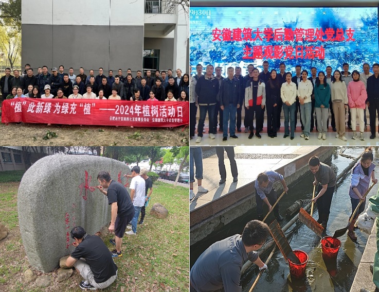 后勤管理处始终坚持把党建引领贯穿于后勤改革发展稳定全过程、各方面,坚持不懈用习近平新时代中国特色社会主义思想凝心铸魂,抓好教职工思想教育和理论学习工作。组织开展党纪学习教育、党的二十届三中全会专题读书班,深入开展研讨交流,推进党纪学习教育常态化长效化。坚持党建引领发展,全年召开党总支委员会议27次,党政联席会议25次,研究决定重要事项。坚守意识形态工作主阵地,加强网络意识形态管理。强化党风廉政建设,组织党员干部赴包公园开展警示教育活动,组织集中观看警示教育宣传片《永远吹冲锋号Ⅲ》,教育后勤党员干部受警醒、明底线、知敬畏。抓好基层党组织建设,开展“支部共建植树”“为景观石描红”“清淤泥”等活动,做好党员发展工作,4名预备党员按期转正,发展2名入党积极分子。2024年,后勤第一党支部通过全省党建工作样板支部中期验收,第二党支部通过学校第二批“双创”培育建设基层党组织验收,第三党支部获学校“2023年度先进基层党组织”。以党建带群建,2024年教职工趣味运动会获得团体比赛第一名。