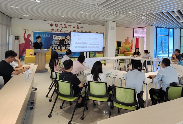 本期沙龙的召集人是艺术学院专职辅导员陈晓天,他以辅导员科研能力提升为切入点,分享了暑期参加安徽省高校辅导员专题培训的学习心得。陈老师立足辅导员岗位职责,以数据和案例分析,梳理了新时代辅导员理论和实践研究的方向和重难点,提出要从增强科研意识、坚定科研信心、提升科研能力、寻找科研路径四个方面打开辅导员理论研究的思路。
