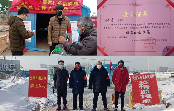 支部党员积极响应党员社区“双报到”,彰显使命担当,主动报名参加家乡社区、街道疫情防控志愿服务。15城规党员邹海波在疫情防控期间积极参加淮南市大通区孔店乡费郢村疫情防控信息采集、精准摸排、宣传保障、疫苗接种等工作。17城规党员冉桃涛在重庆市万州区狮子社区抗疫期间表现优秀,被评为“社区抗疫模范”。在校园封闭管理期间,支部党员19城规高浩然在学习之余,铺下纸、拿起笔,用线条绘制战疫“地图”,记录下这段特殊的“抗疫”时光,安徽青年网进行专题报道。