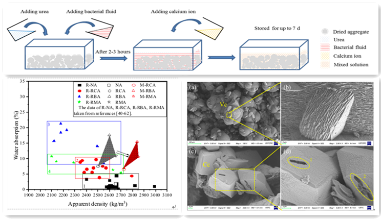 建筑垃圾资源化利用是土木工程材料方向的研究热点,土木工程材料科研团队刘开伟副教授针对建筑垃圾制备的再生骨料孔隙率高、界面过渡区薄弱等问题,基于多学科交叉,研究微生物诱导碳酸钙沉积对不同再生骨料的改性作用,探讨利用微生物增强再生骨料的关键技术。
