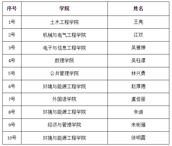 经学校复赛选拔,共有10名选手进入决赛,根据事前抽签,参赛选手比赛顺序如下: