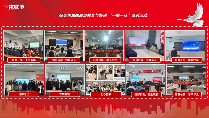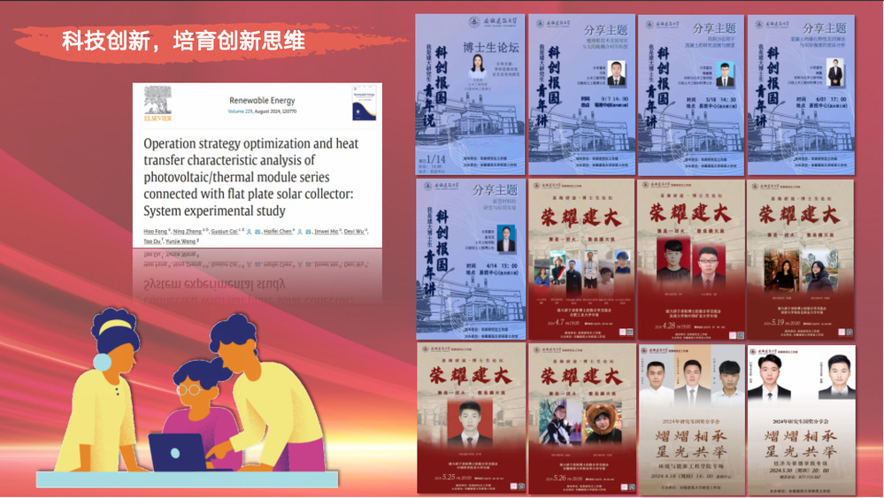 科技创新,培育创新思维。精心组织“我是建大博士生,科创报国‘青年讲’”博士生学术讲座、“我是建大研究生,饮水思源‘青年讲’”考博经验分享会,“易海研途,朋辈领航”国奖经验分享交流会,邀请学校首批招录的博士研究生、成功申博的硕士研究生以及国奖获得者们,分享他们的宝贵科研经验与心得感悟。