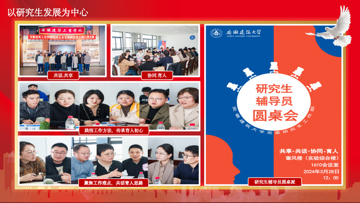 增聘10名青年教师兼任研究生辅导员,加强新聘兼职研究生辅导员培训工作,始终坚持“以研究生发展为中心”,积极探索研究生辅导员赋能发展新模式,引导研究生辅导员践行先进理念、发展思路和务实作风,深刻领悟“五育并举”“三全育人”内涵,并创设“共享,共话,协同,育人”研究生辅导员圆桌会,为研究生辅导员搭建朋辈交流平台与发展支持体系,助力研工干部深悟理想信念、明晰发展目标,创新工作思路、提升育人本领。