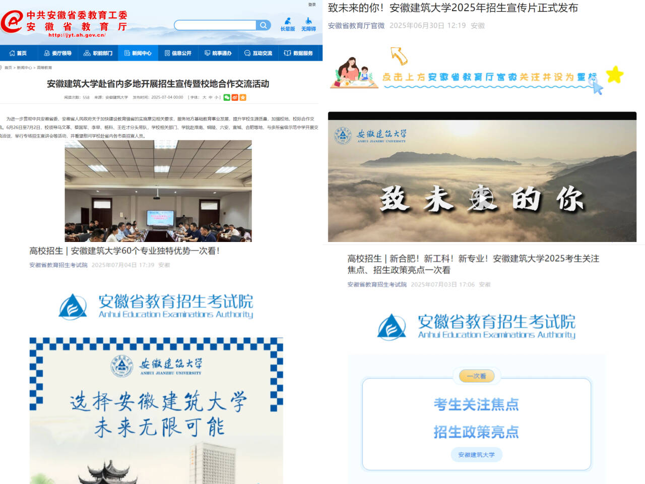 线上招宣方面,一是高阶展示,与中国网、学习强国、安徽日报、安徽广播电视台、中安在线、新安晚报、安徽青年报等省级以上媒体合作组织直播、访谈和现场咨询会等活动14场,年度招生宣传片、系列新闻报道和视频、推文获安徽省教育厅、省考试院、安徽日报、安徽广播电视台、安徽教育网等省级主管部门和省级媒体发布20余次,单篇阅读量破十万,在省内高校中不断领先,获评中国互联网协会年度“全媒体传播卓越奖”;二是高频传播,进一步打造“书记院长面对面”“教授博士说专业”等线上经典品牌活动,首次在学校官方视频号开设直播,与抖音直播间达成宣传联动效应,观看人数突破70万。“六位一体”融媒体宣传矩阵拓展为“八位一体”,新增小红书、知乎号,不断契合新时期考生需求,每周推文不少于4篇,数量质量双重提升;三是高效服务,招生宣传和录取工作开展至今,招生办人员连续数月每日早九点到晚十点全天在岗,周末无休,在校纪委全程监督下规范开展方案制订、章程编制、活动组织、计划投放、投档阅档、宣传培训、日报编写和考生服务等工作,开通八路热线电话和全天候咨询邮箱、留言板,累计接听来电2万次以上,接待来校现场咨询200余人次,工作人员及招宣志愿者在自媒体矩阵和国内各主流媒体相关推文评论区累计回复提问5000余条,在各新生咨询群每天12小时以上在线应答,以周到服务和细致解答,充分展示学校形象,得到广大考生和家长高度肯定。