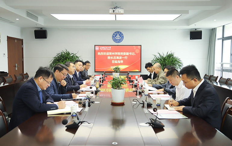 本网讯 10月20日,贺州学院党委副书记、校长吕海波率代表团来校考察交流。学校在紫云路校区徽风楼21楼第三会议室召开座谈会。校党委副书记、校长蔡国军主持会议,学校办公室、教务处、建筑与规划学院、材料与化学工程学院、机械与电气工程学院等相关单位负责人参加座谈。