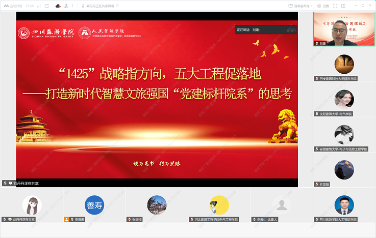四川旅游学院人工智能学院原党委书记刘建以《“1425”战略指方向,五大工程促落地——打造新时代智慧文旅强国“党建标杆院系”的思考”为题》作主题报告。报告分享了学院将党建工作与学科发展、人才培养深度融合,以“1425”战略为引领,实施五大工程,着力打造党建标杆院系的生动实践与思考。