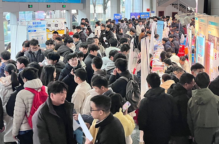 本网讯 1223日,安徽建筑大学2026届毕业生“研后专场”招聘会在大学生活动中心一楼大厅顺利举行。尽管当日室外气温偏低、细雨连绵,但招聘会现场依旧人流涌动、暖意融融,求职氛围热烈浓厚。