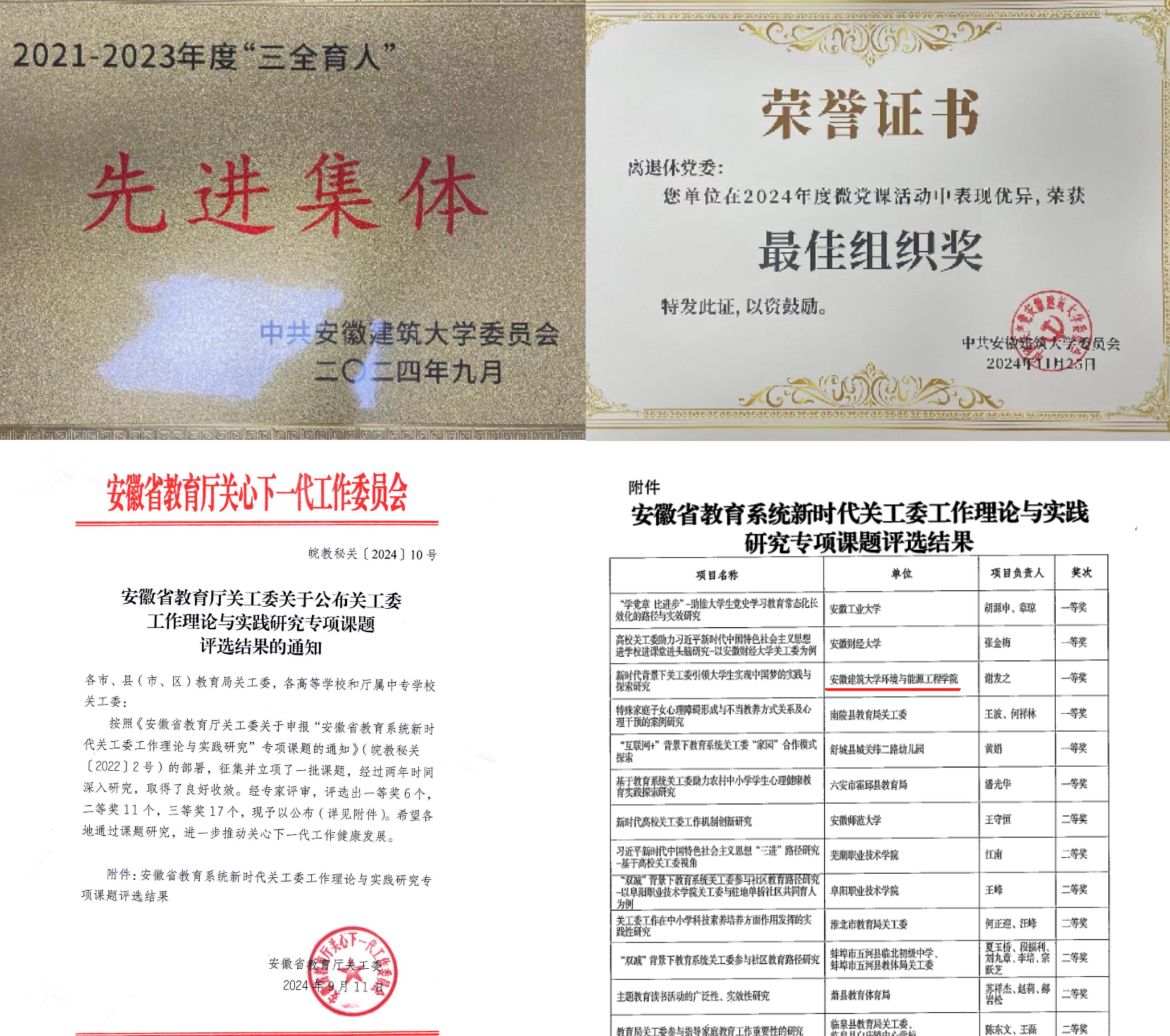 坚持围绕学校中心工作,在组织建设、宣传调研、阵地培育及课题研究等方面持续发力,取得积极进展,先后获得多项省级、校级荣誉及主流媒体关注。2023年荣获省教育厅“全省教育系统关心下一代工作先进集体”及省老干部局“老干部宣传工作优秀单位”称号;2024年获评省老干部局“老干部调研工作优秀单位”,校级“三全育人先进集体”、“十佳网站”及“微党课最佳组织单位”;2025年学校被省委老干部局聘为省直离退休干部工作第八协作组组长单位;《新时代背景下关工委引领大学生实现中国梦的实践与探索研究》获教育厅关工委专项课题一等奖。这些成绩的取得,得益于学校党委行政的坚强领导、各部门的通力协作、广大老同志的鼎力支持和全体离退休教职工的辛勤付出。