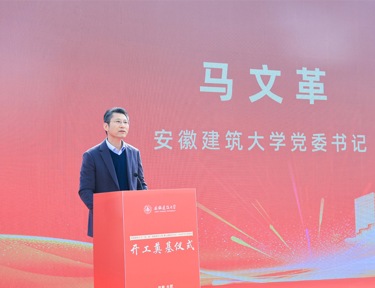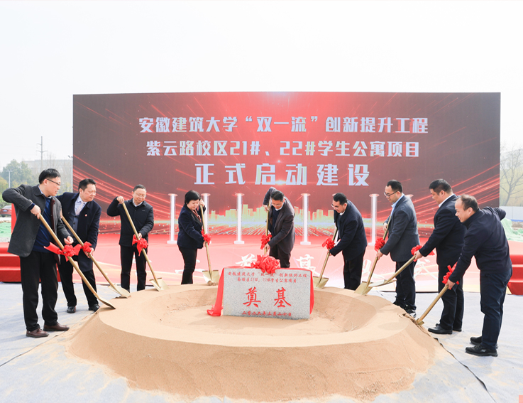 本网讯 3月20日上午,安徽建筑大学“双一流”创新提升工程重点项目—21#、22#学生公寓开工奠基仪式在紫云路校区隆重举行。学校领导马文革、蔡国军、李早、杨科、高跃峰,有关职能部门负责人、师生代表,施工总承包、监理、质量检测、设计等单位负责人、施工班组人员共同见证这一事关学校发展、惠及全体师生的重要时刻。校党委副书记、校长蔡国军主持奠基仪式。