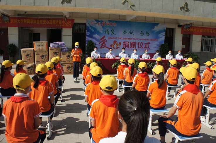 本网讯 在”六一”儿童节这个欢乐的节日,为了让留守儿童也享有同样美好的童年。6月1日,安徽省教科文卫体工会对阜南县老观乡中心学校(小学部)留守儿童帮扶捐赠仪式在老观乡中心学校举行。