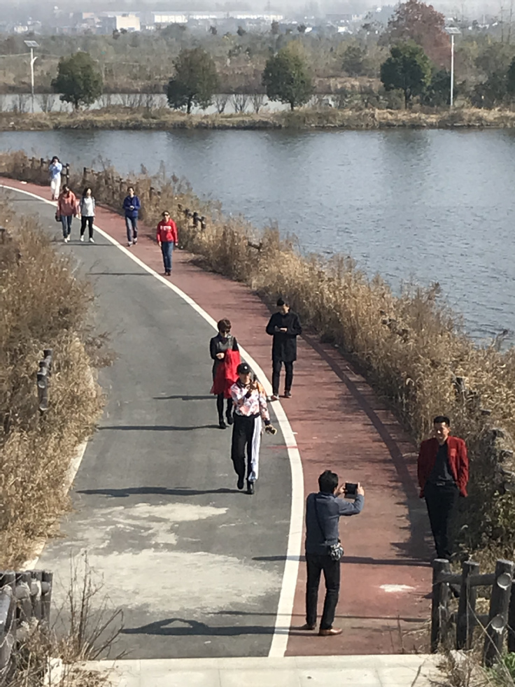 在生态园里,有的老师带上渔具,垂钓池塘边;有的老师漫步堤坝,留下美好瞬间;有的老师赏花、采甘蔗……