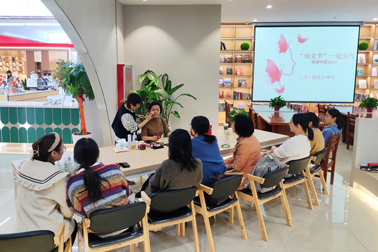 由校工会主办,机电学院协办的个人美妆私享课”在南区善建书坊举行,参加的女教工学习用最简单的工具和产品完成“快手日常妆”的方法共同见证了美妆带来的“美丽蜕变”