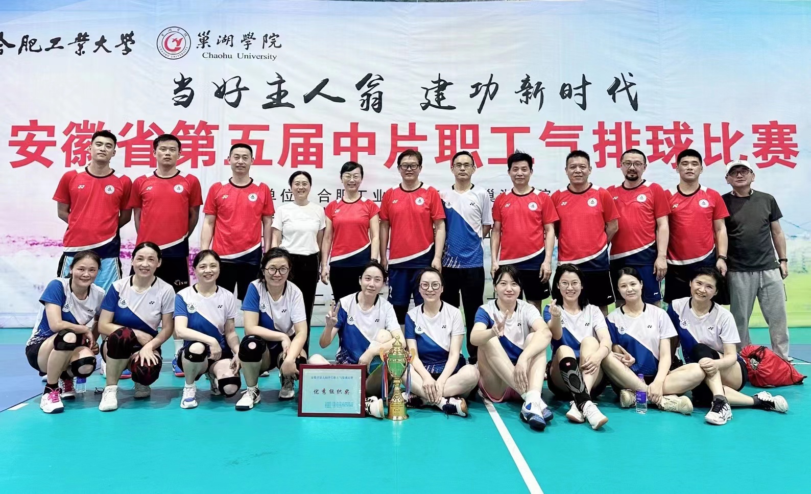 本次比赛共有来自中国科学技术大学、合肥工业大学、安徽大学、安徽农业大学、安徽建筑大学等24支代表队参加。经过了三天的激烈角逐,我校男女气排球队均获得二等奖,校工会获“优秀组织奖”的好成绩。 比赛场上,运动员们精神抖擞,身姿矫健,团结协作,奋勇争先,比拼技术战术,比拼体能士气,献上精彩连连、惊喜不断的攻防赛事,充分展现了我校教职工昂扬向上、敢拼争先的新时代精神风采。