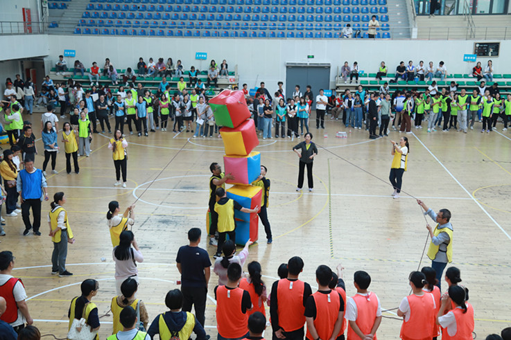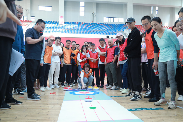 本次运动会共设置6个比赛项目,分别是“旱地冰壶”、“手脚并用”、“节节攀升”、“众星捧月”、“碰碰球大战”和通俗桥脾。比赛开始,各参赛队研究战术,充分发挥团队作用,参赛队员们齐心协力、全力以赴,现场观众跃跃欲试、情绪高涨,为场上队员热情呐喊、加油助威,场面热火朝天,欢声笑语连成一片。经过激烈的角逐,获团体总分前八名的分别为土木学院、材化学院、机关第一党委、环能学院、后勤集团、机关第二党委、电信学院、艺术学院。土木学院、机关第一党委、后勤集团获得优秀组织奖。