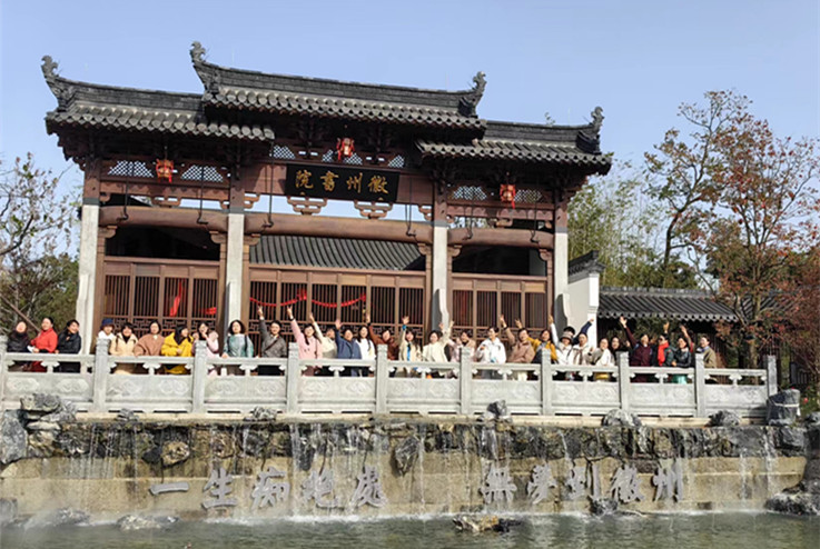 步入安徽园,大家立即被眼前的美景惊艳了,珠翠湖水光潋滟,湖边林木婆娑,亭台水榭,粉墙黛瓦,尽显徽州园林文化之美,大家行走于雾气缥缈的历史长廊,穿梭于文墨飘香的徽州书院,感受安徽文化的独特魅力。