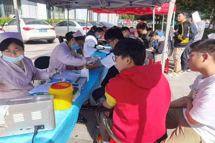 捐献全血是将抽出来的血液全部进行收集。领表、填表、量血压、验血、筛选、抽血,献血者在医护人员的引导下,一个个伸出胳膊献爱心。一位同学说,虽然有点疼,但想到自己的血液能让患者康健,甚至挽救患者的生命,自己感到特别高兴和自豪。这次捐献全血活动南北区共有886名师生参与,献血量约为24.95万毫升。