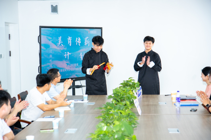 本网讯 近日,安徽建筑大学公共艺术教育俱乐部在科研特区举办2025美育传薪计划成果汇报,美育传薪人们带着原创美育成果,走进建大科研特区,与一线科研人员展开交流。活动特邀了校团委书记丁超老师、特种电线电缆国家地方联合工程研究中心安徽建筑大学分中心副主任曹田老师和科研特区的研究生们一起观赏美育传薪人的优美表演。