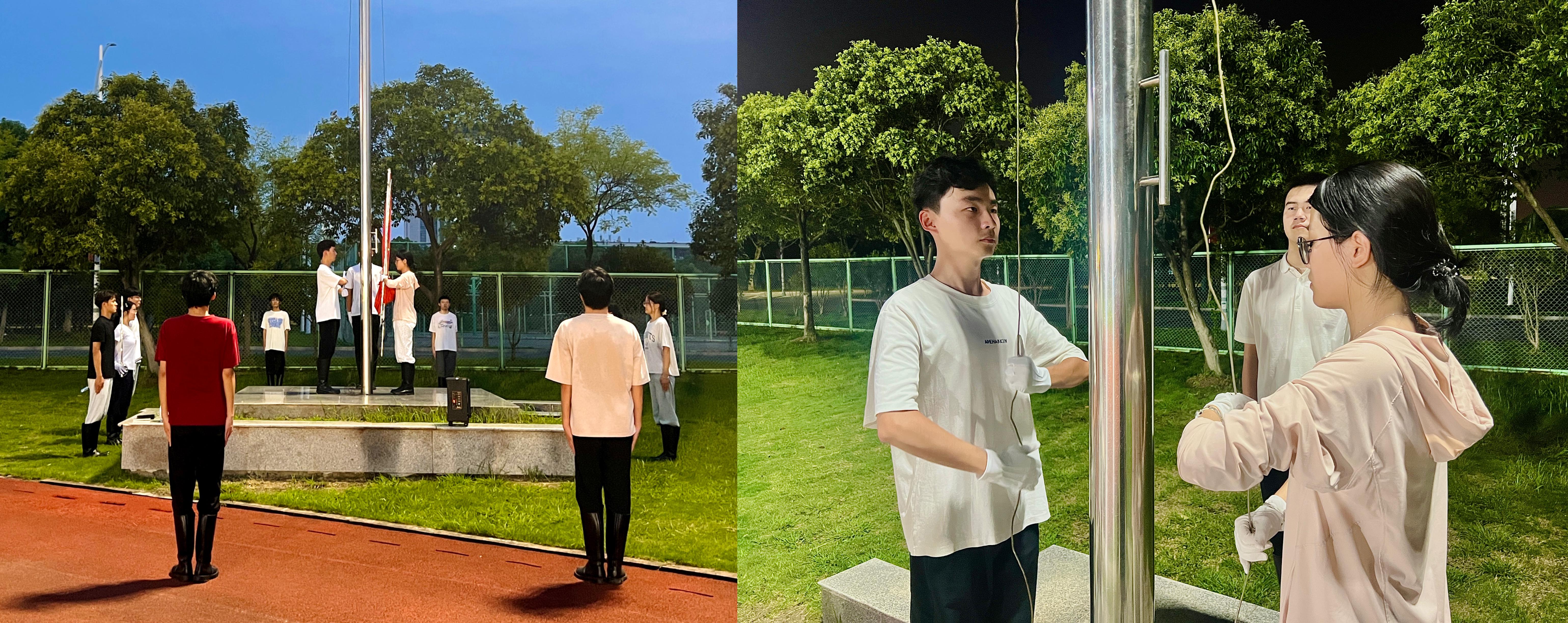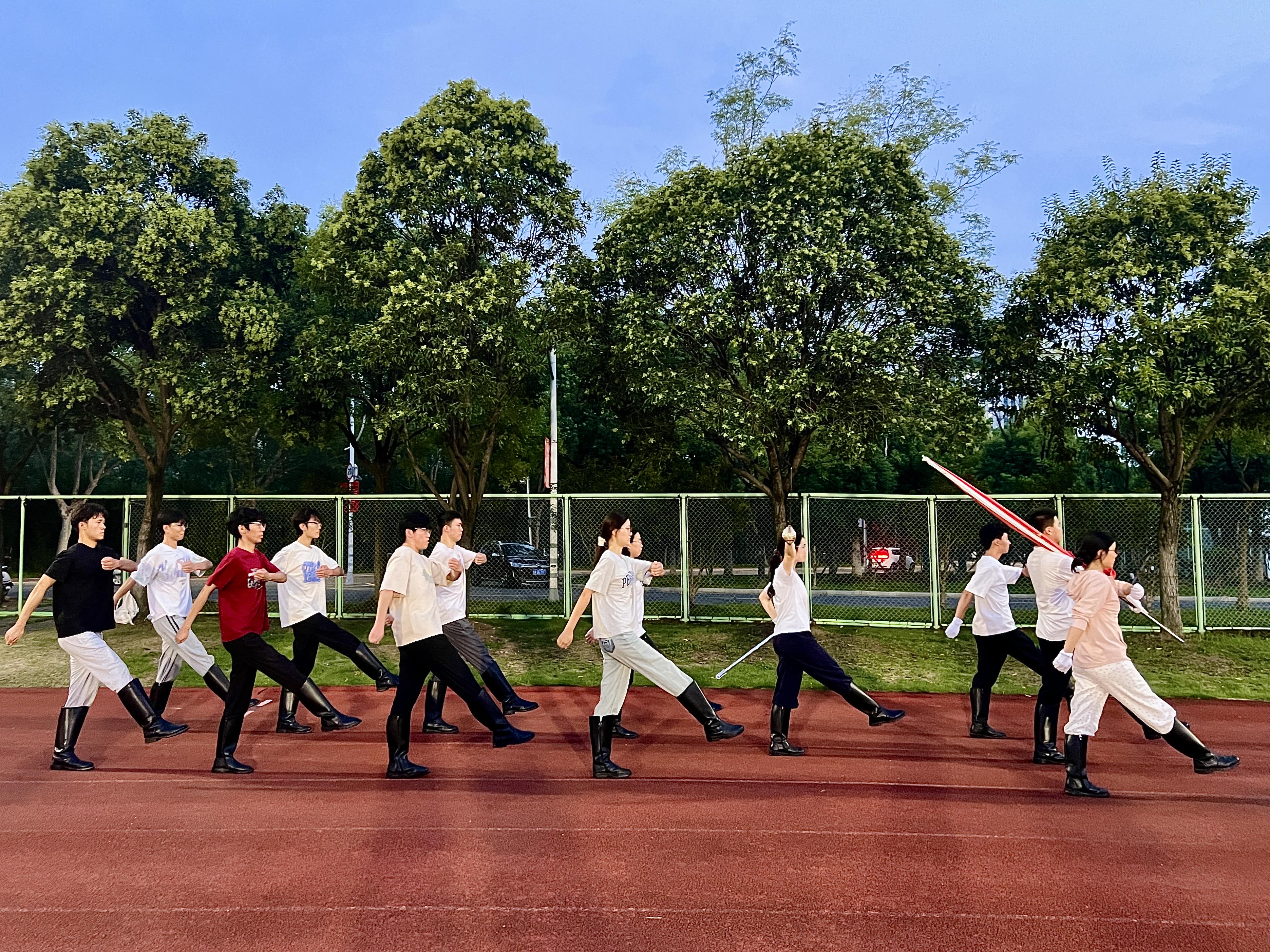 为确保仪式庄重规范、展现建大学子良好风貌,国旗护卫队提前开展训练。队员们利用课余时间,在田径场上反复打磨队列动作,从摆臂的角度、步幅的大小到转身的节奏,每一个细节都逐一校准、精益求精;针对护旗、抛旗及升旗的关键环节,他们通过多轮模拟演练精准把控流程,以严苛训练筑牢仪式根基,用汗水诠释责任与担当。