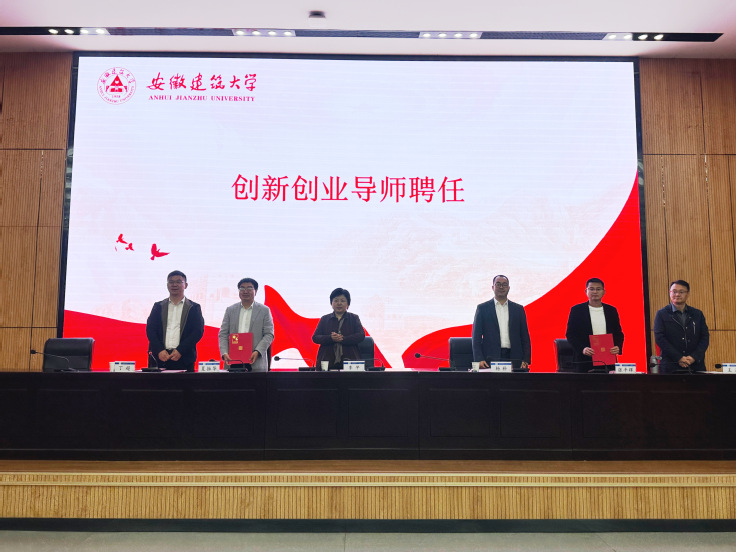 仪式上,校领导为特邀科创领域专家张平辉、夏振华、许鹏颁发校外创新创业导师聘书。