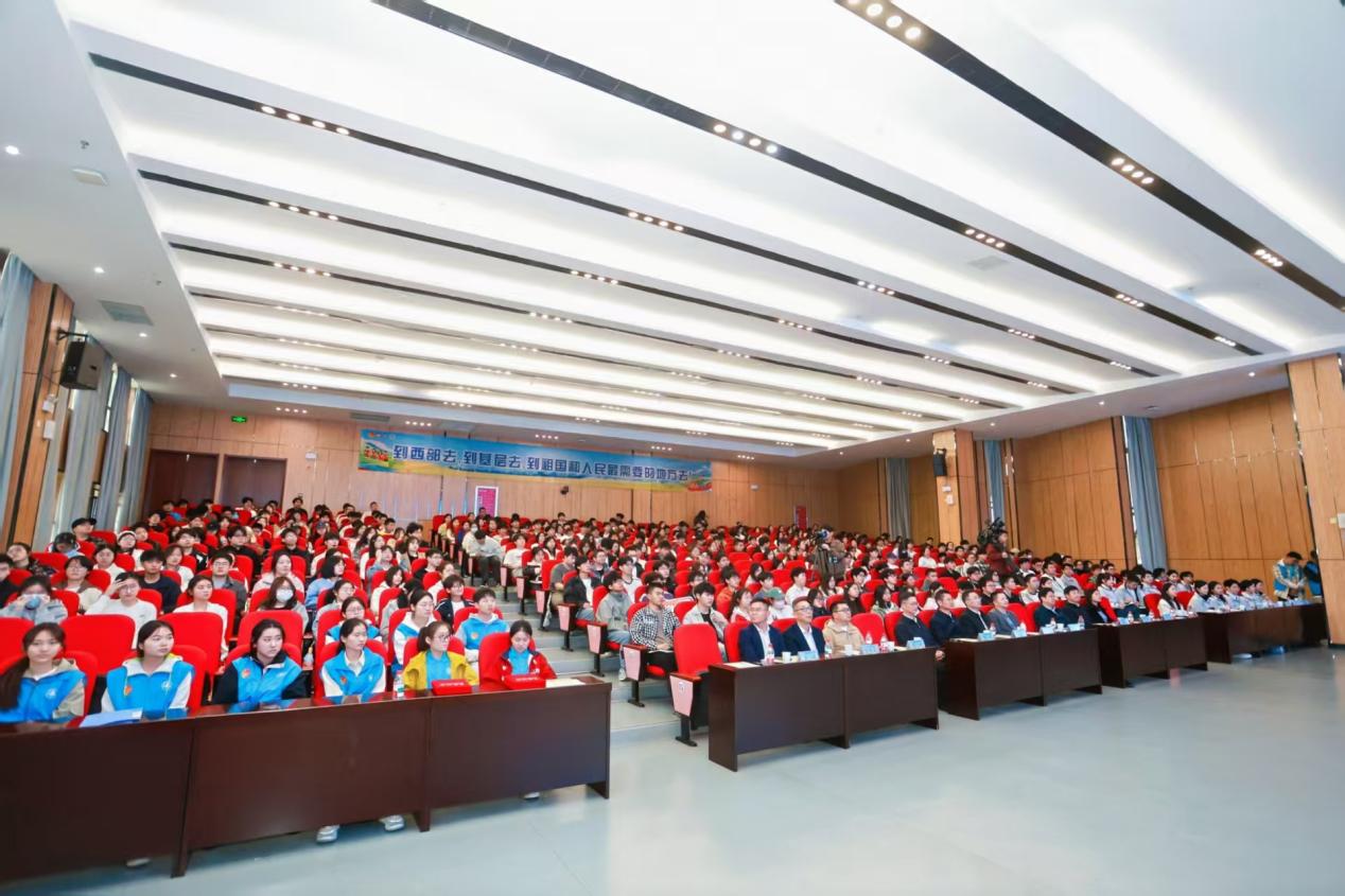 分享会上,7名大学生志愿者代表与现场400余名师生分享基层服务经历与成长感悟,学校外国语学院2024届毕业生黎孟悦作为其中一员向大家讲述自己的志愿服务经历。西部计划安徽省项目办负责同志就2026—2027年度大学生志愿服务西部计划、安徽省大学生志愿服务乡村振兴计划作情况介绍,并与现场师生展开交流,就相关问题作解答。