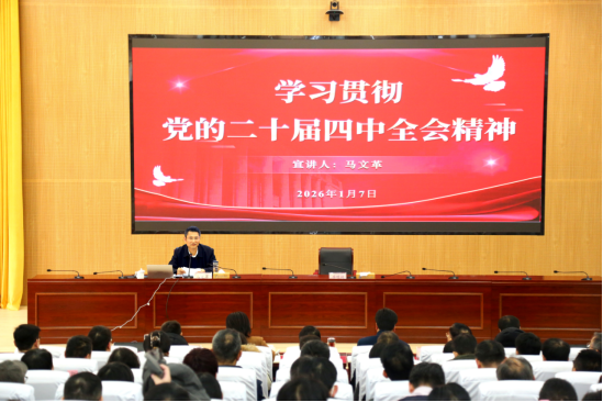 本网讯 2026年1月7日至8日,校党委书记马文革受邀安徽省“社科名家大巡讲”,走进淮北市宣讲党的二十届四中全会精神。先后在淮北师范大学、相山区相南街道办事处,以两场主题鲜明、内容翔实、案例生动的宣讲报告,系统阐释全会精神,引发广泛反响。