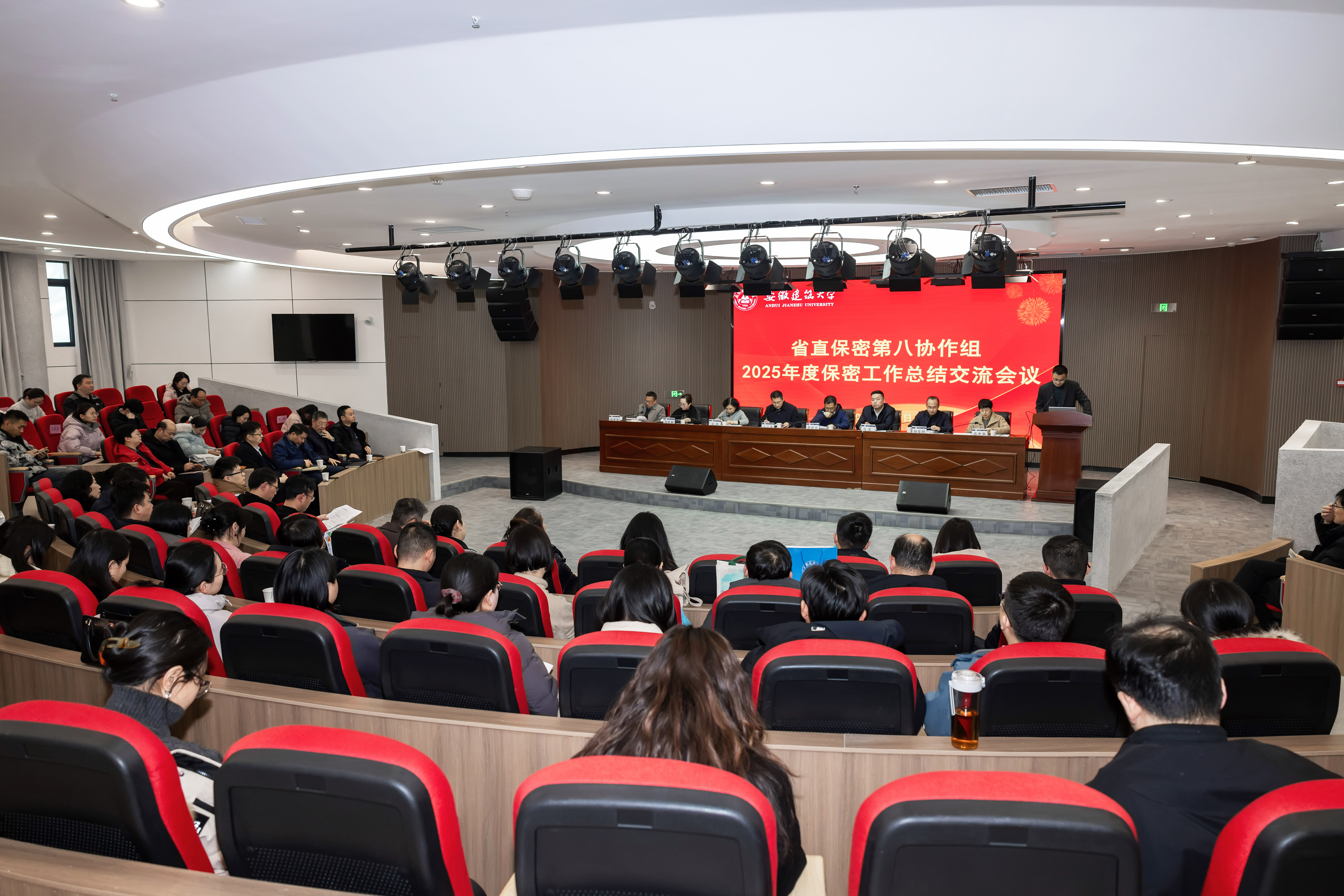 本网讯 岁律更新,共谋新篇。2026 年1月23日下午,省直保密第八协作组 2025 年度总结交流会在我校紫云路校区徽智楼一楼报告厅隆重召开。会议全面总结 2025 年度协作组保密工作成效,交流经验做法,完成组长单位交接,并部署 2026 年重点工作。省委保密办(省国家保密局)副主任(副局长)郭晓东、综合处一级调研员王萍,学校党委书记马文革,省教育厅、中国科学技术大学、合肥工业大学、安徽大学等17家协作组成员单位保密工作主要负责同志,学校保密委员会成员单位、相关职能部门主要负责人及全体兼职保密员参加会议。学校办公室(党办、校办)主任马宾主持会议。