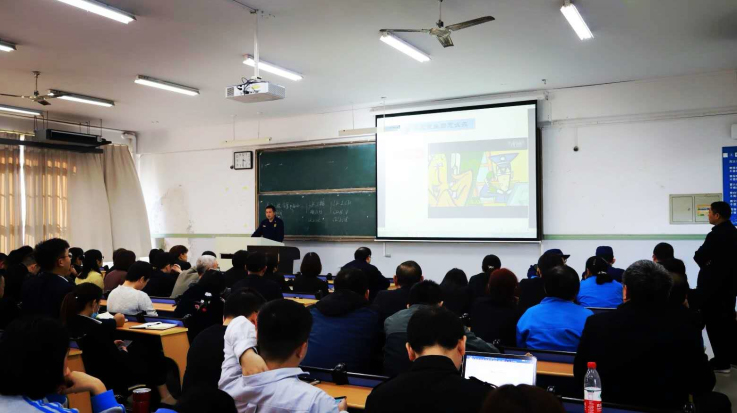 王若文大队长首先讲解了近年来我国发生的一些火灾经典案例,对易发生火灾的场所及消防救援思路进行了介绍,强调消防安全工作需要树立消防安全防范意识,加强消防设施建设,并播放了消防安全警示片。