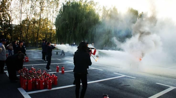 随后,保卫处消防科详细讲解并演示了灭火器的操作要领,并组织教职工逐个进行油锅灭火的实操训练。