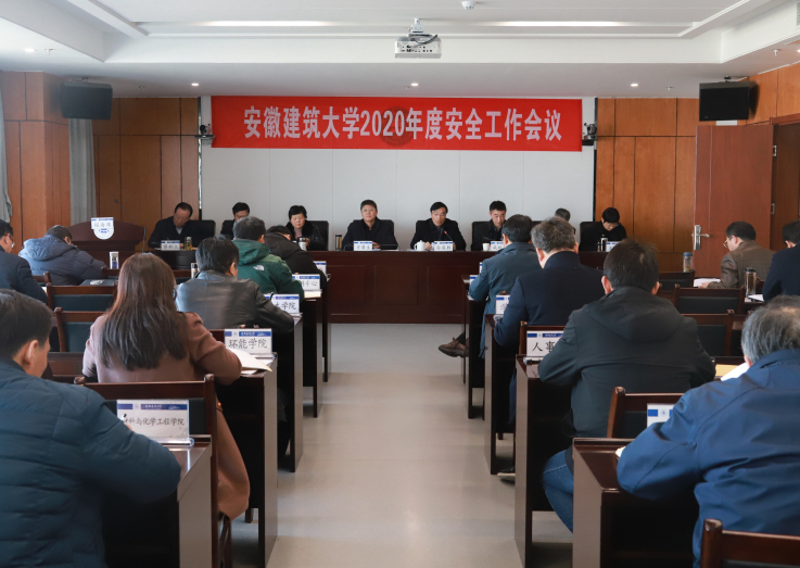 本网讯 2021年1月19日,安徽建筑大学2020年度安全工作会议在南校区实验综合楼21楼第一会议室召开,校领导、各职能部门主要负责同志、各学院党委(党总支)书记参加会议,会议由校党委副书记、校长孙道胜主持,校党委书记方潜生出席会议并讲话。