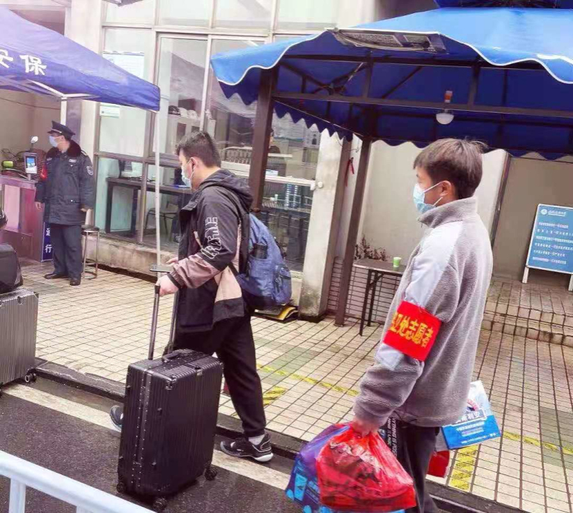 为做好学生开学报到的引导、服务工作,保卫处还安排了一批学生志愿者,他们忙碌的穿梭在人群中,协助学生将大件行李运至宿舍楼,耐心的为返校学生排忧解难。