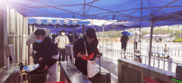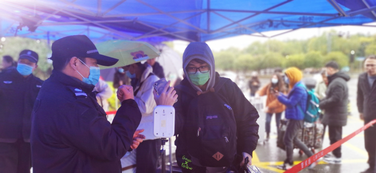 报到当天,保卫处要求南北校区保安公司增加保安数量,引导学生进入校门有序排队,配合开展体温检测和身份信息查验,按照疫情防控要求进行核酸检测的学生登记核酸检测报告后方可进入校园。
