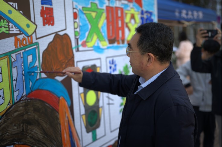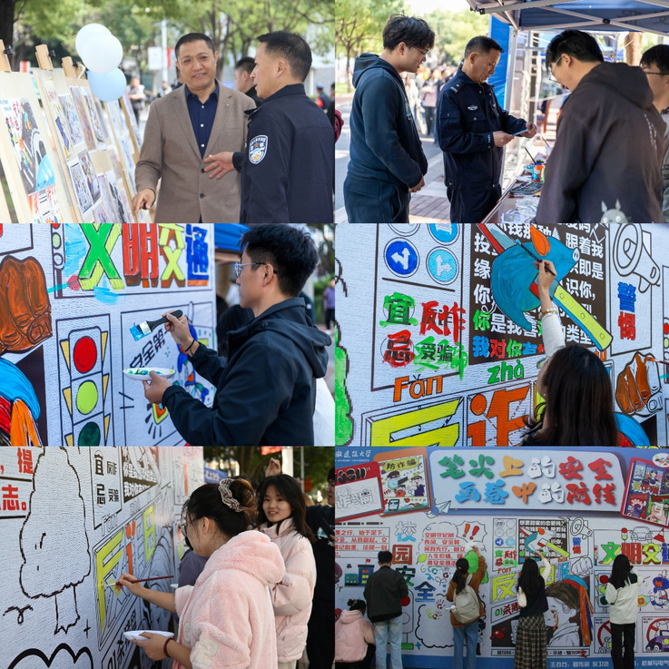 校领导在一幅幅作品前驻足良久,认真听取主办方相关负责人对活动形式的介绍,同时对同学们将艺术创意与安全主题相结合的能力表示赞赏,并对这种寓教于乐的安全教育新模式给予了高度评价。在热闹的“安全知识涂鸦区”,党委副书记、校长蔡国军欣然拿起画笔,与同学们一道在长卷上挥毫创作,绘制出寓意平安的图案,以实际行动诠释了“师生同心、共筑安全”的理念。校领导对这种寓教于乐的安全教育新模式给予高度评价,指出安全是学校发展的生命线,此次活动形式新颖,是平安校园建设的一次成功探索,效果显著,值得推广。