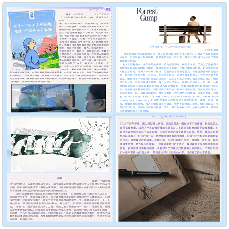 本网讯  为贯彻疫情期间“停课不停学”的精神,同时了解学生们在疫情期间的日常生活。3月18日至4月10日,材化学院举行了“分享每‘疫’天”的主题征文活动。