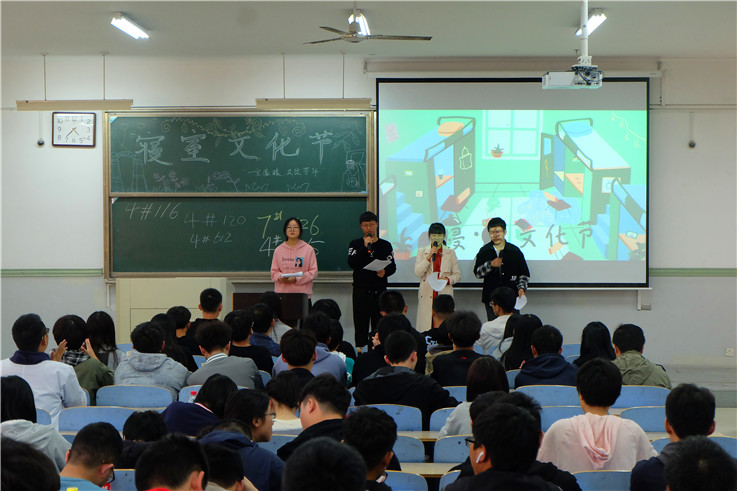 本次文化节围绕温馨、梦想和创意三大主题展开。初赛以线上抖音短视频集赞的方式进行评比。决赛由入围宿舍的学生代表通过演讲和PPT展示的形式对参赛宿舍进行介绍。