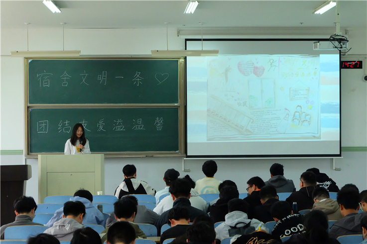 此次比赛以宿舍为单位,以“宿舍文明一条心,团结友爱溢温馨”为主题,向广大同学征集手抄报。手抄报以海报的形式向大家展现宿舍特色和奋斗目标。活动过程中同学们依次向观众介绍参赛作品,展现寝室风采。同学们的作品内容健康,积极向上,处处体现了大学生的朝气与活力,展现出材化学子团结互助、和谐友爱的精神风貌。经过激烈角逐,4栋601获得了此次比赛的一等奖。