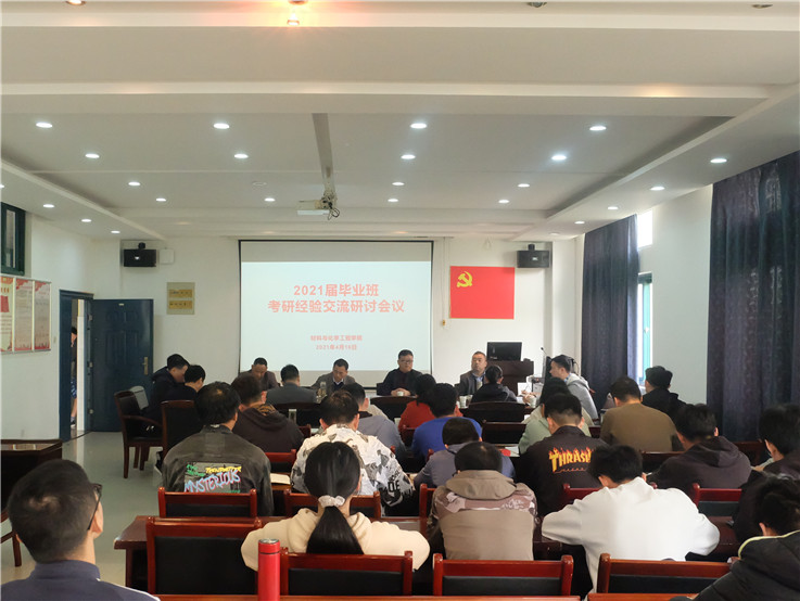 本网讯 为了进一步营造浓厚的考研氛围,更好地推进学院考研工作,切实做好对2018级考研学生的针对性指导和服务保障,4月16日,材化学院在机电楼会议室举办了2021届毕业班考研经验交流研讨会,特邀土木学院党委副书记胡燕青、环能学院辅导员吴明轩、机电学院辅导员李晶岑前来传经送宝。学院党政领导、各专业系主任、全体辅导员、2021届毕业班班长、2018级各班级班长和学习委员参加会议,会议由学院党委副书记何世明主持。