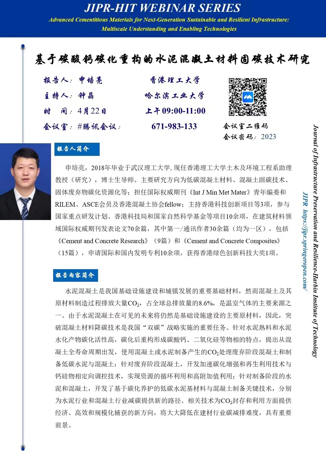 学术报告:基于碳酸钙碳化重构的水泥混凝土材料固碳技术研究