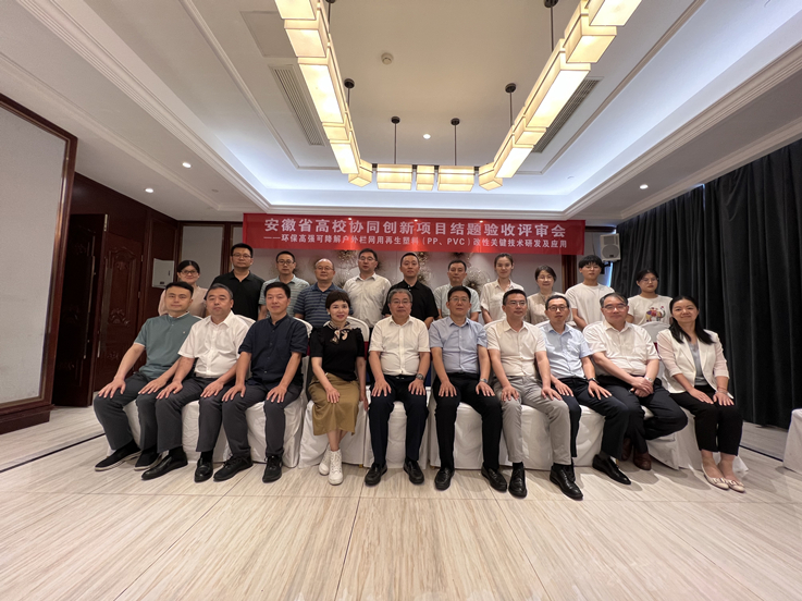 本网讯 7月8日下午,我校作为牵头单位承担的安徽省高校协同创新项目“环保高强可降解户外栏网用再生塑料(PP、PVC)改性关键技术研发及应用”结题验收会在合肥召开。合肥工业大学教授丁运生、中科院合肥物质科学研究院研究员田兴友、科天集团高级工程师李维虎、安徽工业技术创新研究院研究员陈林、安徽省产品质量监督检验研究院高级工程师曹洪、安徽立泰会计师事务所高级会计师金传玲等校外专家和学校科技处、子课题负责人、项目合作单位负责人、材化学院丁益院长及课题组骨干成员参加了会议,会议由科技处处长雷经发主持。