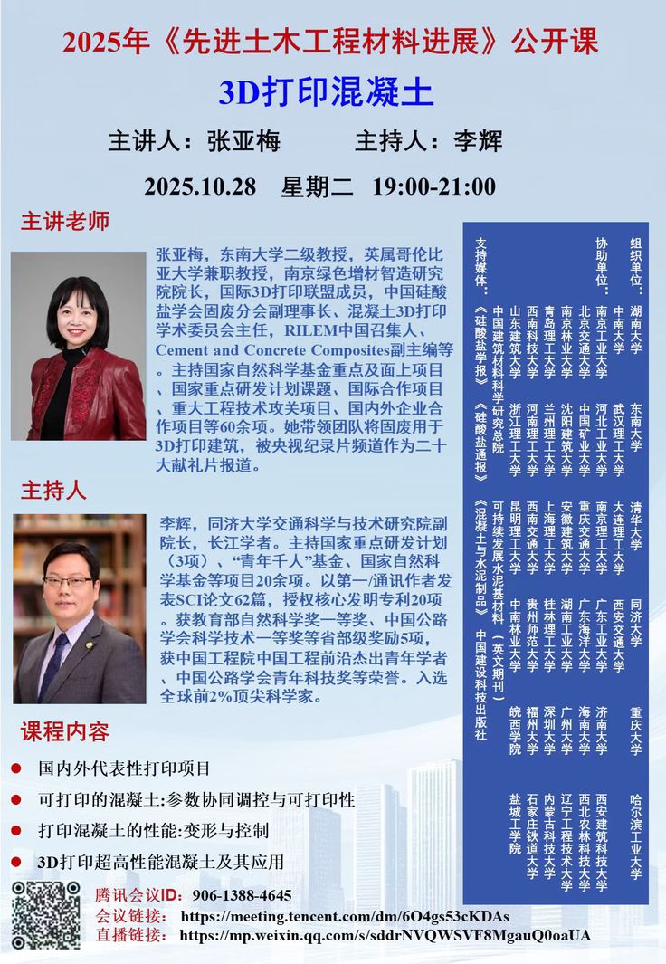 2025年《先进土木工程材料进展》公开课——3D打印混凝土