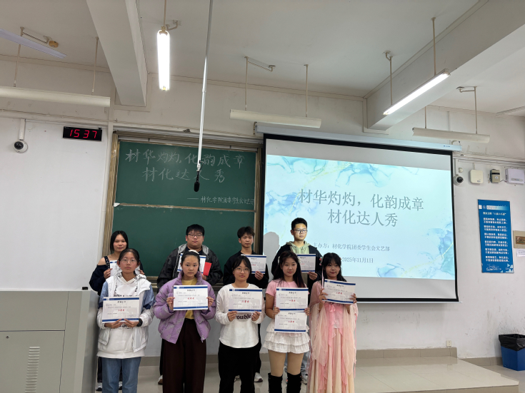本次达人秀不仅为同学们搭建了一个展示才艺、交流思想的舞台,更彰显了材化学子积极向上的精神风貌,生动诠释了材化学子“以材立身,以化载道”的精神追求——在实验室里严谨求实,在舞台上自信绽放。学院将持续推动“科技+人文”融合育人,鼓励同学们在打牢专业基础的同时,涵养艺术气质、拓展综合素质。“材”华灼灼,因热爱而闪耀;“化”韵成章,因梦想而飞扬。愿每一位材化学子都能在形式多样、内容丰富的校园文化活动中发展兴趣、陶冶情操,绽放属于自己的青春光彩。