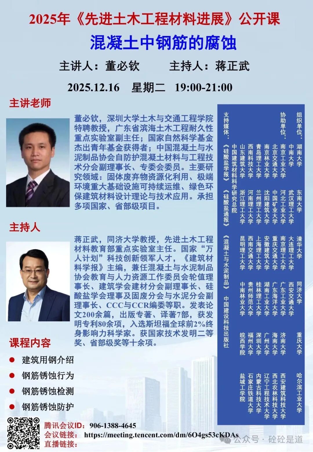2025年《先进土木工程材料进展》公开课--混凝土中钢筋的腐蚀