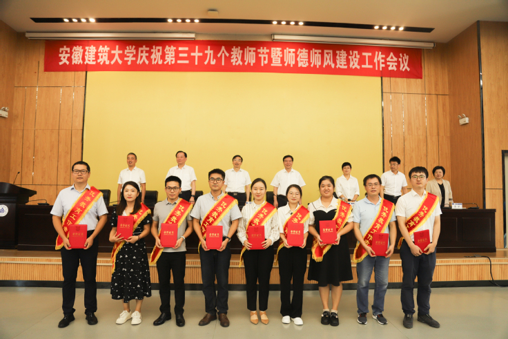 会上,校党委常委、副校长蔡新立宣读了《安徽建筑大学关于表彰2023年度校师德标兵、优秀教师、优秀教育工作者的决定》,3名师德标兵、30名优秀教师、包括档案馆汪伟同志在内的17名优秀教育工作者受到表彰。校领导分别为受表彰人员颁发荣誉证书。