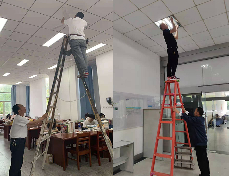 每走进一处维修现场,看到的永远都是后勤物业人员忙碌的身影,他们不分昼夜,只要一个电话,不论是吃着饭,还是睡着觉,他们总是第一时间出现在维修现场,修水管、换灯泡、修课桌椅、换开关等等,暑假期间,物业部门累计查出安全稳患56件,处理56件,累计维修1029处,只为给师生们提供更好的教育教学环境。